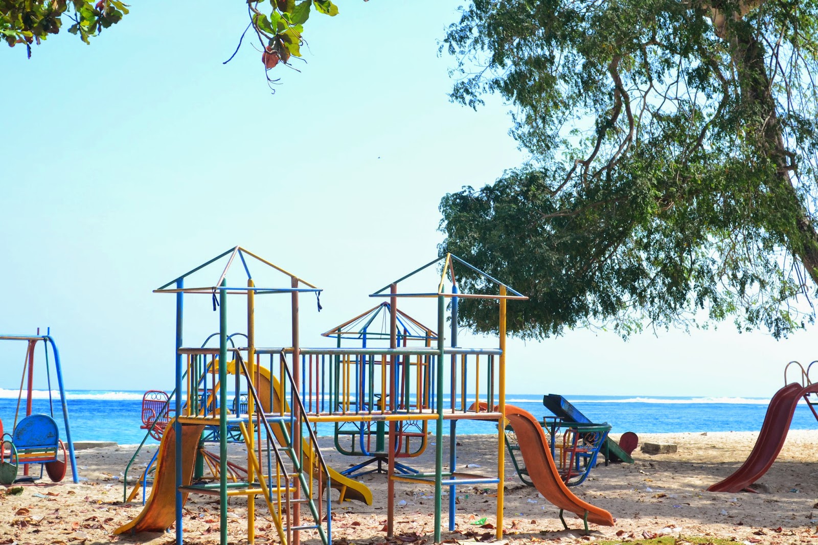Di sisi pantai, saya melihat beberapa bangunan setengah jadi. Menurut penduduk setempat, bangunan itu tadinya untuk semacam hotel. Tapi sepertinya batal diteruskan. Ya, ada untungnya juga sih, jadinya pantainya tampak bersih tanpa sampah kecuali ranting kering yang dibawa ombak. Cuman, repotnya adalah kalau haus itu.