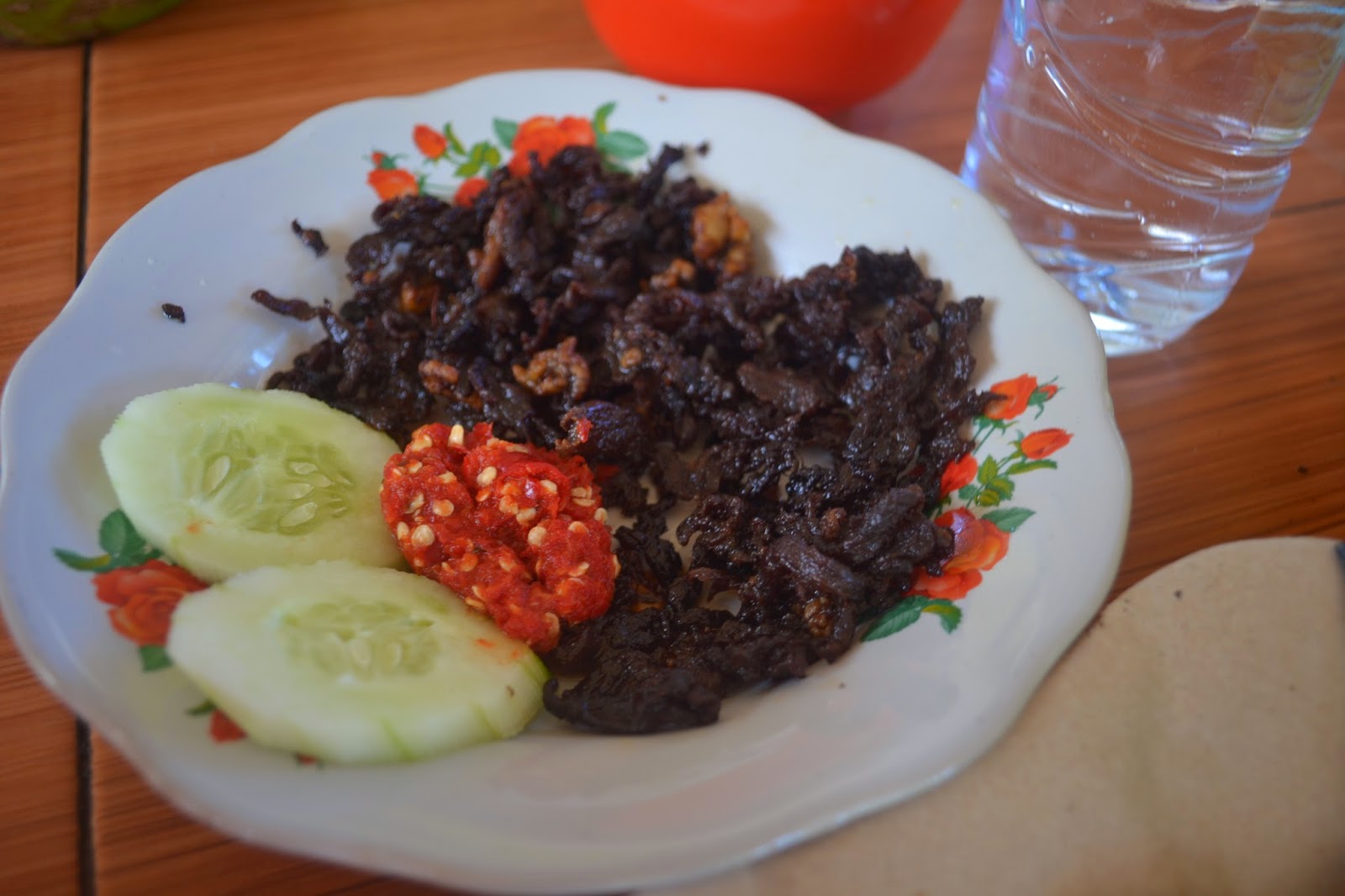Seperti yang saya duga, pasti deh supirnya ngebut. Beneran aja. Ngebut sengebut-ngebutnya. Sampai saya nggak mau lihat ke depan. Pura-pura ngobrol atau ngunyah makanan.Ngomong-ngomong makan, Bu Jenni nraktir kami makan siang dulu di sebuah tempat makan tak jauh dari Bandara.Menunya bikin perut yang lapar langsung megap-megap. Tapi tetap sih favorit saya ya plecing kangkung. Nama tempat makannya lupa, nanti deh ditanya dulu ke Griska.