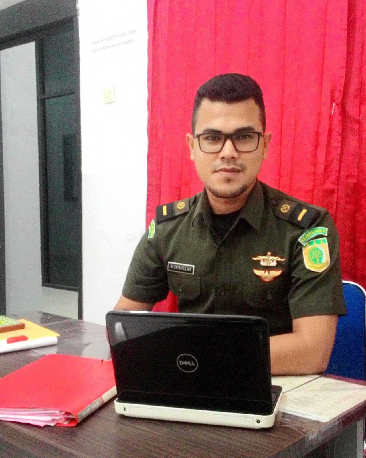“Awalnya saya sedang tugas di Bandara Soekarno Hatta tiba-tiba ada yang menelepon saya. Ternyata dari Polda Metro Jaya. Saya disuruh merapat ke ruang Media Management Center (MMC) untuk seleksi calon presenter TV . Saya bingung, soalnya saya belum paham soal presenter. Jadi presenter itu di luar tugas Brimob dan cuma saya yang dipanggil dari Brimob,” ujar pria berpangkat Brigadir Polisi Dua alias Bripda ini.