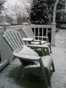 What I wanted to do was sit down on that chair on my deck and read a book. Bundled up and cocooned in wool, I was going to escape into fiction. I haven’t read a book in the seven days leading up to and through Thanksgiving. Yet, the vow I would have violated was the one I made to sit at my desk and write. With a new book in the works and another that needed revisions, priorities demanded that I work at my writing. But I didn’t want to. I wanted to indulge. I wanted to sit down and read. We should all make a point of taking time for ourselves and all that. But when there are things to get done, we have to set aside our little pleasures and tend to the big tasks. Sorry, self. You don’t want to hear it, but it’s true. I think too often we do what we want to do rather than what we need to do. I had to be schooled today…by the snow.