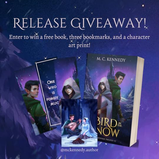 In honor of the tour, M.C. Kennedy is hosting an EPIC giveaway! There will be both a US and an international winner—woohoo! The US winner will receive a paperback copy of A Bird in the Snow + three themed bookmarks and a character card. And the international winner will receive an ebook copy of A Bird in the Snow + three printable themed bookmarks and digital character art! Enter for a chance to win below!