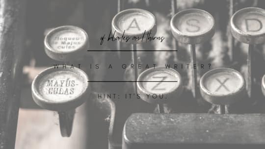 If you, my friend, have the courage to pick up your pen or pluck at your keyboard and write, then you are indeed a great writer. There are those who write great, and there are great writers. Great writers are the only ones with an emotional and spiritual connection to their stories...the only ones with a strength and bravery that comes from the Lord...the only ones with a beautiful calling placed upon them by God.