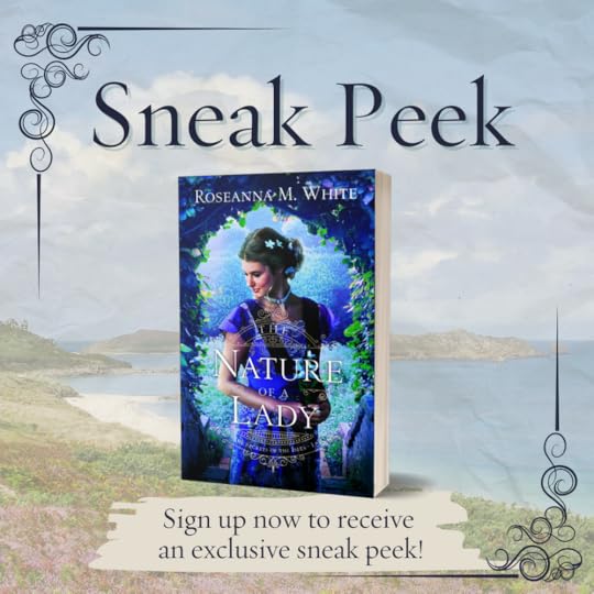 You heard me right. You have the chance to sign up for a daily sneak peek of The Nature of a Lady by Roseanna M. White in your inbox, starting April 1st!!!!