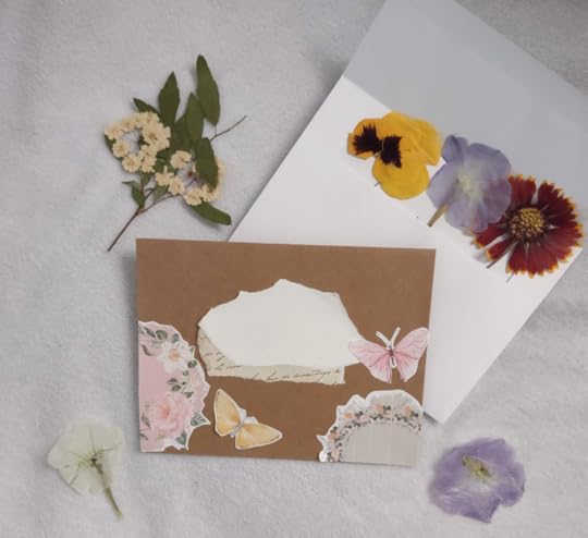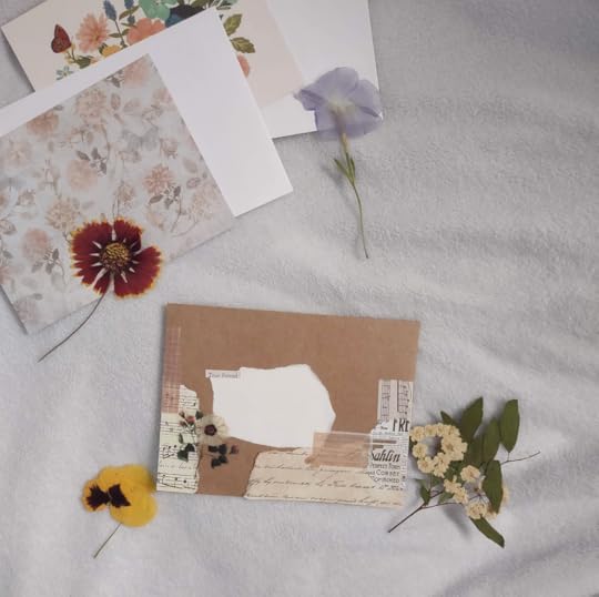 My fourth and final envelope was a struggle. I wanted something that screamed spring in England, with delicate cottagecore vibes. But I have nothing cottagecore (even though it's, like, one of my favorite aesthetics of all time). So I downloaded and printed these free designs from Nanda Anderson that gave off a lovely spring vibe! This one was also super simple, but I think that fits my simplistic cottagecore theme!