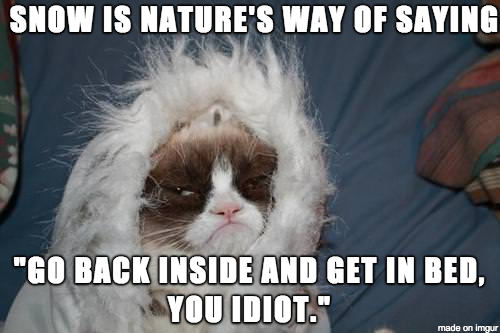 Feel free to talk about whatever you want in the comments since this isn’t a real post. Actually, you can always feel free to talk about whatever you want in the comments on any post because we’re not Topic Nazis here. That’s the royal We; it’s just me, really, covered in snow, on the lookout for any personal attack comments which have happened twice in the past sixteen years here, so it’s not like I have to be alert, which is good because I’m covered in snow . . .