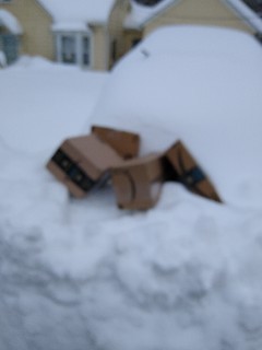You see that picket fence there in back? Those pickets are four feet tall, so I’m thinking it was closer to two feet. Also there’s a car under that big lump of snow.