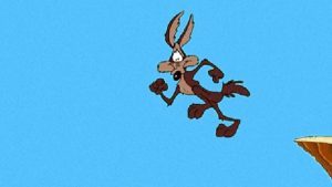 I had a moment of panic–one of many this week on a variety of topics–when I looked at this non-book and thought, “There’s no there there!” Some of you may remember I had a similar moment with Nita. Several in fact. One of the hardest parts of doing a discovery draft is that you’re dancing on air. Remember Wile E. Coyote running off the cliff, doing just fine until he looked down, and then he fell like a rock and usually got run over by a truck when he hit the ground? That’s why you never look down during a discovery draft. If the fall doesn’t kill you, the truck will.