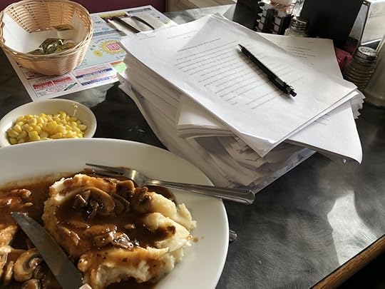 I spent yesterday doing a final polish on Nita’s book including a lunch non-break at my diner where I ate comfort food and edited at the same time. I’m a multi-tasker, I can do that.
