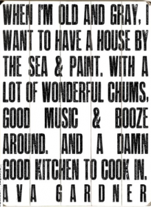 I have no idea if Ava Gardner actually said that, but if she did, she was my kind of woman. In the end, that’s what happiness comes down to, I think: beauty around you in sight and sound, people you love close to you, work and play that fulfills you, and really great food. Everything else is noise.
