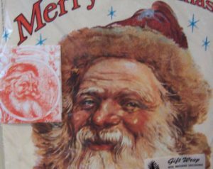 I also looked at Christmas wrapping, most of which was fine, but there were a lot of those floridly colored retro Santa Clauses that looked like they’d had way too much egg nog and were harassing the elves. At this point, I don’t trust any guy in position of power, but those faux vintage Santas are especially skeevy, like Steve Bannon, only not that bad.