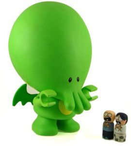 And I’m quite sure she’d have a My Little Cthulhu. He comes with two screaming people who fit into his hands. And you could buy the six piece My Little Victims set if you wanted more. Which of course you would. (Don’t get excited, the only place you can find these now is on eBay for a whole lot of money (if new) or just a lot of money (if used). The Little Victims set alone is over twenty bucks. I want it but I spent enough buying a used My Little Cthulhu. Hey, it’s RESEARCH. (This is how I ended up with a kitchen full of art deco china, too.)