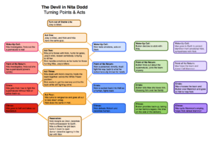 Each of those turning points is represented by an event, something that happens that affects the characters enough that they turn and in so doing turn the plot. Joey is killed, and Nita and Nick investigate which leads to the wake-up call: Nick kills Rich to save Nita, who now knows the supernatural is real. Galvanized by the knowledge that Nick is getting closer and Nita now is fully read in to the situation, the big bad speeds up poisoning Nick, which leads to the point of no return: Nick can’t remember anything after 1502 but he knows he’s missing something and Nita now has to take over as Hell’s lead investigator. They both keep fighting, at which point the Big Bad created the crisis point by sucking Nick back into Hell as a vulnerable human, thinking they’ll be weaker fighting alone (and forgetting that unlike other Devils and Devil Spawn, they have friends).