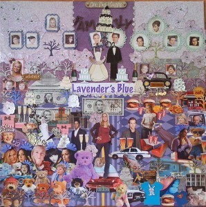 Krissie: When I was about twenty I did a scrapbook of pictures that were evocative to me. Mixed words with photos and stuff. So that was what I thought of when I did my first book collage. I had this historical and I was having trouble getting into it so I cut out photos that made me think of the book. but it was much too literal. It ended up just pasting pretty pictures on poster board.