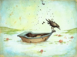 •The Dancing Crow blog. I should have mentioned that before. I used to stop by when Lee was doing a postcard a day–gorgeous things–but then I wandered off, probably looking for pie. The important point is that there are always beautiful things on there. The hippos are particularly good. I must make hippos now. Speaking of pie,