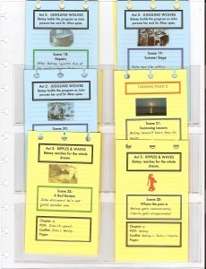 About a million years ago (okay, probably about four or five years ago), I taught at a beach retreat and met Alison, a terrific writer who wanted to be a better writer. Toward the end of the retreat, I did a collage workshop and Alison caught fire and did something amazing. Then after the retreat, she did something even more amazing: she turned collaging into notetaking, plotting, and real art, which she showed me when I met her again at a local RWA meeting. I said, "Send me those so I can put some of this up on Argh," and she did. Except she sent it to me at the exact moment I was changing from an old laptop to a new laptop and I missed a couple of e-mails when I changed over. Fast forward three years later and I'm finally cleaning off the old laptop because my now three-year-old newer one is having battery troubles, and there's Alison's e-mail with a jpg of her note cards and one of her collage pages. Look at this (click on the images to make them larger):
