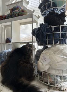 My life is nuts right now and is going to continue to be nuts for all of this month. So my moments of Zen are cherished, and one of them is the way my cat, Emily William, has taken over the bay window in my bedroom. There used to be yarn in those cubbies but Emily did not like the way they interfered with her view, so the yarn is gone. I’ll find it eventually. But now when I start to vibrate, I look at Emily’s broad beam serenely surveying the landscape she was once a skinny stray in, and I smile and relax. Emily William is better than Valium.