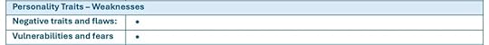 Don’t be so Negative, but be vulnerableIn this, our third installment of character creation using the template, we’ll delve into the realm of personality traits – weaknesses and vulnerabilities. These elements are essential for adding depth to your character and creating opportunities for growth and development throughout the story.