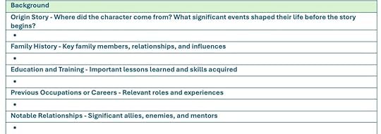 A richly developed background provides valuable information about a character’s origins, family history, education, and notable relationships, allowing readers to better understand their motivations and emotional journeys. This background, with a simple mapping of the character’s history and relationships will inform and drive their emotional challenges and growth as well.