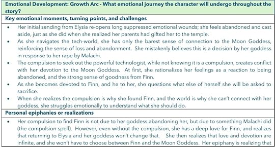 Continuing to use the sample for Elara, here’s how it shows up in my first draft: