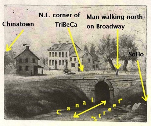 The company lay some wooden pipe. Unfortunately, their source was Collect Pond which, as noted above, was not a great source of clean water. In fact, in 1803 the pond was so polluted, the city decided to drain it. A canal was dug to the Hudson River. That canal was later backfilled and is now Canal Street. Where Collect Pond was, became Five Points.