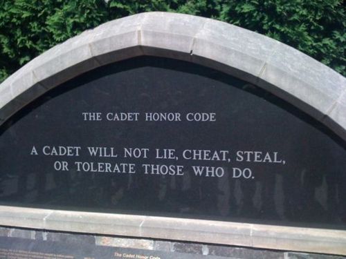 “A cadet will not lie, cheat, steal, or tolerate those who do.”