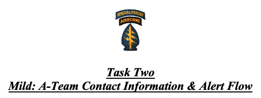 *The out of area emergency point of contact is someone who would be unaffected by a local disaster or weather event and everyone on your team can contact to update their status. This is in case you can’t contact A-Team members in the midst of the emergency/disaster.