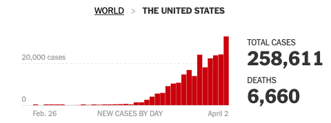 A huge misconception right now is that rural areas are safe. People are focused on New York City and the massive tolls there, but the reality is that NYC might actually be at the peak and perhaps crawling through it to the other side. It’s elsewhere that that the water has receded from the shoreline and people are out and about on the exposed beach. Literally, in the case of Georgia which opened its beaches this past weekend.