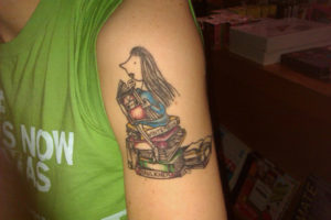 NYPL recently posted a page of librarian tattoos. Here’s the page for more, but below is a sample of people you’d not want to run into in a dark alley unless you had all your late fines paid up.