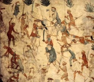 On 14 August 1720 they were attacked by Pawnee and Otoes, and if you look closely at the drawing on the buffalo robe, it looks like other Europeans, most likely some French.