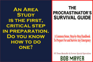The first thing we did when we were assigned a mission in Special Forces was an Area Study. We examined WHERE the mission would occur in detail. We all need to do an area study of where we live, work, go to school and travel. It is the very first step of preparation, because it focuses you, yet I’ve not seen it in any other survival or prep guide I’ve researched.