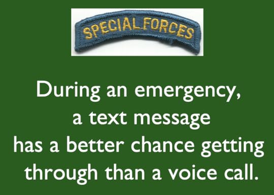 One thing to remember is that a text message has a greater chance of getting through than voice if the cell phone system is overwhelmed after a wide-spread disaster.