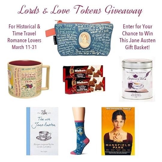 Historical romance and time travel romance fans, how would you like to take home a Jane Austen-them gift basket loaded with goodies? A reproduction historical love token? Maybe some historical romances on your wish list or an Amazon gift card? Enter the Rafflecopter below.