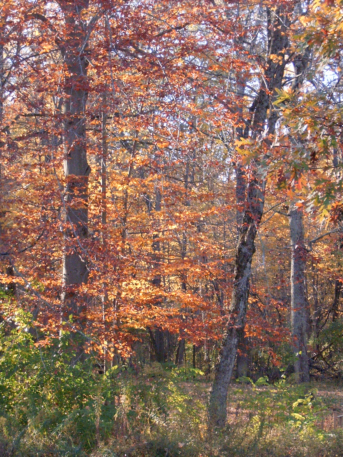 Cool, crisp air and its brilliantfire huesare hard to find whereheat simmers until wellinto December.Here, long still-hotdays of October and Novemberallow early darkness to eatout the green,leaving mottled brownarrayed on branches untilstorms wash themdown onto my lawn.Yet, now and again,bits and pieces ofautumn glory appear—a vine, a baby tree hidingin my palmetto grass,burst into redor bright yellow,defying heat, proclaiming, “Fall is here.”