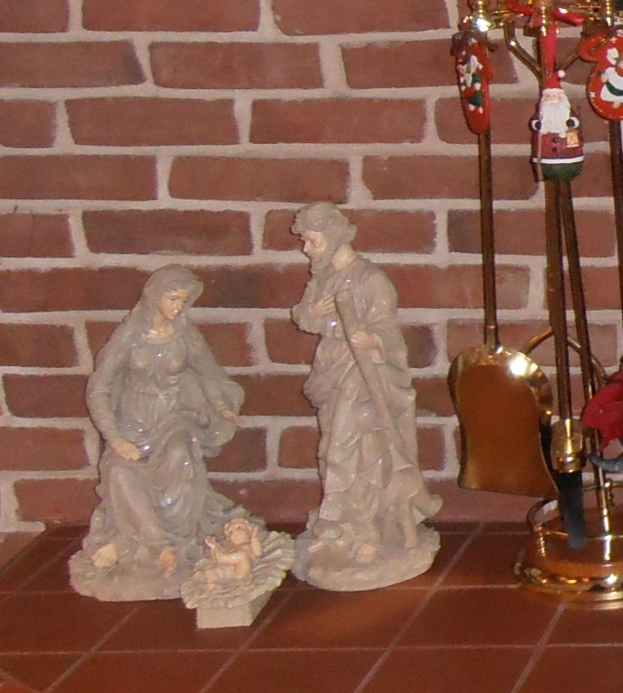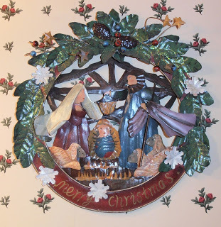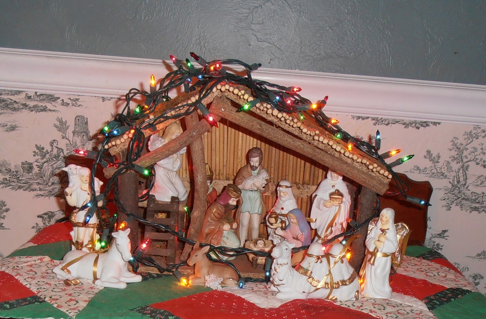 Our Nativity--pieces from three sets. (Chalk it up to raising five kids!)