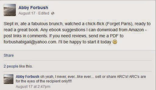 Tiffanie Rushton, aka Abby Forbush, soliciting advance review copies.A plea for restraintLet me stress that this matter is being handled in the courts where it belongs. As infuriating as the situation may be, we are not vigilantes or bullies, and retaliation is entirely inappropriate. Under no circumstances should any person take it upon themselves to harass any party in the case, even if it’s just “giving her a piece of your mind.” It may be just a stern rebuke from your perspective, but multiplied by dozens or even hundreds of other rebukes, it becomes a brutal assault.Also keep in mind that she operates under a number of names, some of which are shared by innocent persons.Holding Tiffanie Rushton accountable may prevent other authors from being defrauded and attacked, but it must be done through proper channels. If you would like to help bring this con artist to justice, please donate and share Rachel’s fundraiser at http://www.gofundme.com/ctdxpw. She will need all the help she can get to fight back.Together, we can stand against plagiarism.