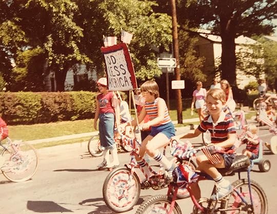 As a child, my parents let me ride my Big Wheel in the parade and later my black Huffy. As you can see in the photos below, I had a standard Fourth of July striped shirt that spanned years.