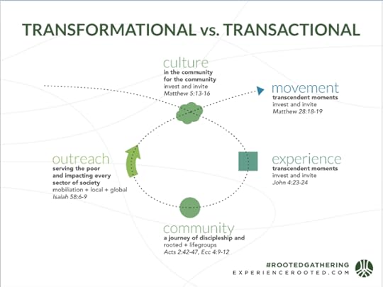 The title of the Loop tells the story: Transformational versus Transactional. The intent of Rooted is to change people’s lives, but also to change the culture of your church. The focus goes to culture, connection, and outreach – nothing else. Rooted is an empowering movement. But, if you attempt to put new wine into old wineskins, then you’ll have a mess on your hands.