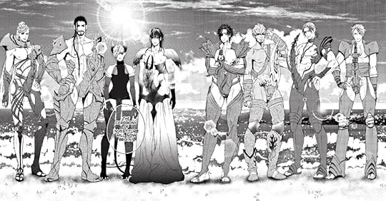 They’re joined by Yaling, the barely legal chosen and son of the Fang Clan chieftess, leader of a matriarchal clan of lesbian-hunters where boy births are exceedingly rare. Chosens Vampyr and one-eyed Sicolenga, of the Healer Clan (mystical healing arts and medicine) and the aforementioned Dragon Clan respectively, arrive and seem to have a fraught history. Frighteningly pretty hunk Blanc of the frighteningly beautiful, mountain-dwelling moon clan, and hot-tempered warrior-chief Lolo of the clay-working Earth Clan–previously disgraced at the last tournament–complete the set.