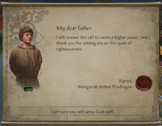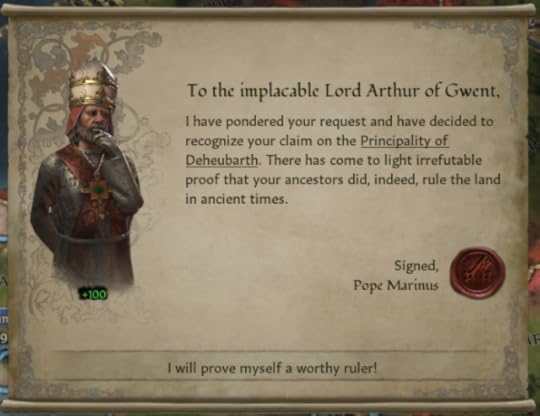 “My father, our Prince, taught us as children our people had a destiny,” Arthwr continued. “Not to rule Deheubarth, not to rule Wales, but to rule all of England.”