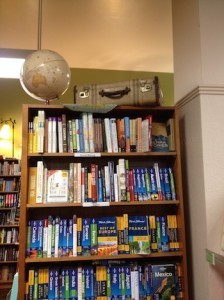 The store is beautiful and welcoming, with a wide array of new and used books, magazines, gifts, and cards that are thoughtfully arranged throughout the space. Among my favorites is the travel section, which features this globe and vintage suitcase: