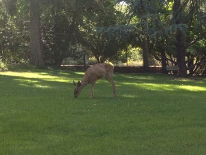 I also fit in a little writing time, which is so much easier to do here than in my regularly scheduled life. For one, the setting is so peaceful; looking out over the water or watching deer walk past relaxes the brain in a way that just doesn’t happen when I’m trying to fit writing in amid all my other work.