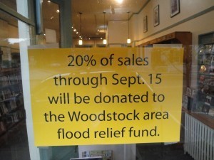We did eight events in four states, traveling through Hurricane Irene-damaged areas that sent us on all sorts of detours, which were so very minor compared to what most residents were going through. It was amazing to see how these communities we visited bonded together; the photo below is from Woodstock's Shiretown Books: