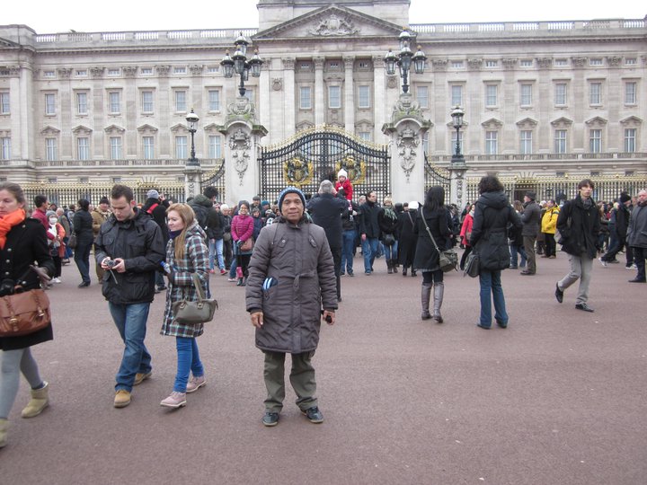 Semasa berada di London sempat melawat Istana Buckingham atau Buckingham Palace dan London Eye. Dalam cuaca pagi yang dingin kami berjalan kaki menuju ke kediaman resmi Ratu Inggeris itu. Dari jauh kelihatan orang ramai yang terdiri daripada pelancong sudah memenuhi perkarangan luar istana yang menjadi lambang kemegahan kerajaan British. Kami menyaksikan pertukaran shif pengawal istana. Setelah rampai tamat jam 12 kami berjalan kaki menuju ke London Eye yang menjadi tumpuan orang ramai.
