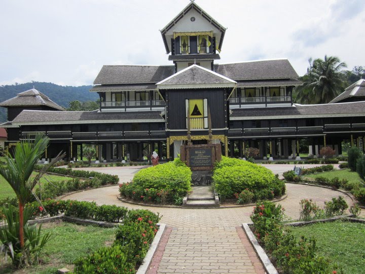 Di depan Istana Pagar Ruyung yang baru dibangunkan semula setelah musnah terbakar.
