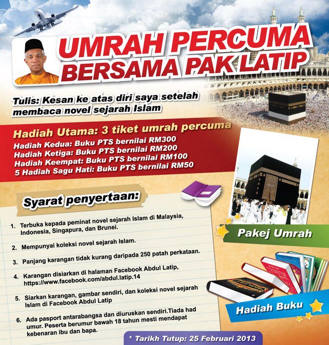 Assalamualaikum wbt, tujuan “hadiah Umrah” ini diadakan sebagai menyatakan rasa syukur dan terima kasih kepada peminat novel sejarah Islam yang telah memberi sokongan. Tahniah kepada mereka yang terpilih, yang belum terpilih jangan kecewa, semoga hadiah seperti ini dapat diadakan lagi pada masa hadapan. Terima kasih.