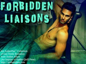 Forbidden Liaisons – a fabulous new Amber Pax Collection of stories coming to www.amberallure.com in August has a hot n spicy cover. My amazing publisher and cover artist Trace Edward Zaber designed and produced this yummy cover. Inside it will be five stories from five M/M authors – D.J. Manly, Carolina Valdez, Angel Martinez, L.A. Witt, and me, A.J. Llewellyn!