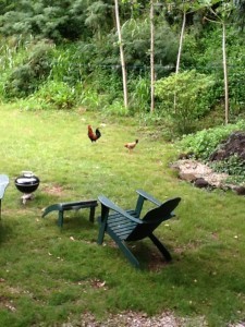 She was kind and frankly, a bit drunk but I emphasize kind because we were exhausted and hungry and she’d provided milk, coffee, fruit, juice, soup and cereal…even English muffins. They were a welcome reward and helped blunt the true nature of our rustic surroundings. Don’t get me wrong, we wanted the authentic, local Hawaiian experience but I hadn’t expected roosters that crow all day long or cats that fight all night. Right outside my window.