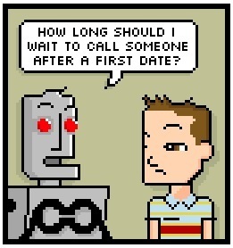 RS:I wanted to write about relationships and thought that robots wouldmake a good stand-in for clueless men. It spiraled out of control andinto more of an ensemble cast gag strip and I was powerless to stopit.