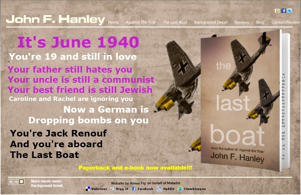 My website: AGAINST THE TIDE: http://bit.ly/1hSTWoeMy website: THE LAST BOAT: http://bit.ly/1kHD831AGAINST THE TIDE regional Amazon link: http://bit.ly/1h9fLd8THE LAST BOAT regional Amazon Link: http://bit.ly/1mjfkT1Goodreads author page: http://bit.ly/1lOZyNKFacebook Author Page: http://on.fb.me/1nNeCxaAmazon Author page: http://amzn.to/TlgUKKTroubador AGAINST THE TIDE: http://bit.ly/1oXgR3qTroubador THE LAST BOAT: http://bit.ly/1uGqxjPReview link: http://bit.ly/1qxYZMf