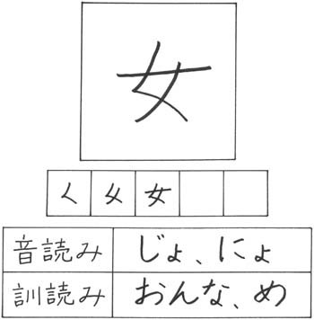 First, the word of the week, which is “onna”=female. Not that I will have cause to say it aloud; I think if anyone is talking to me, my gender should be as apparent as it needs to be. But the guide tells me I’ll need to learn the written Japanese for my gender if I have hope of using the appropriate bathroom. Hence, my first kanji!